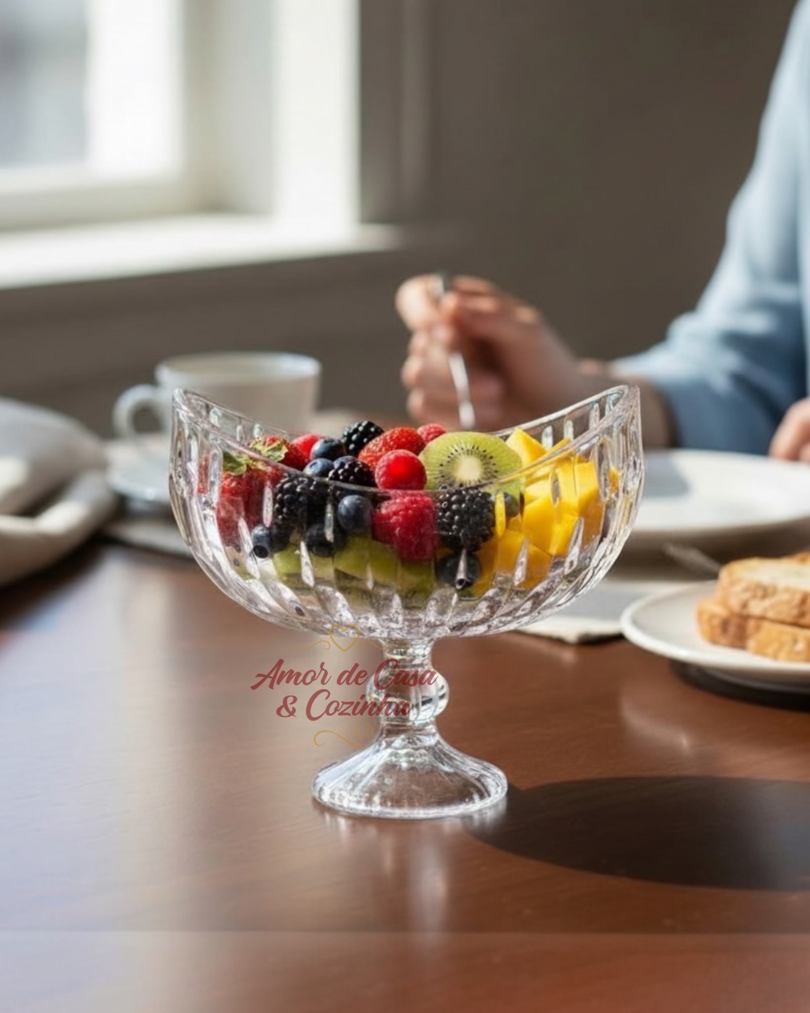 CENTRO DE MESA DOCEIRA DE VIDRO COM PÉ 26cm