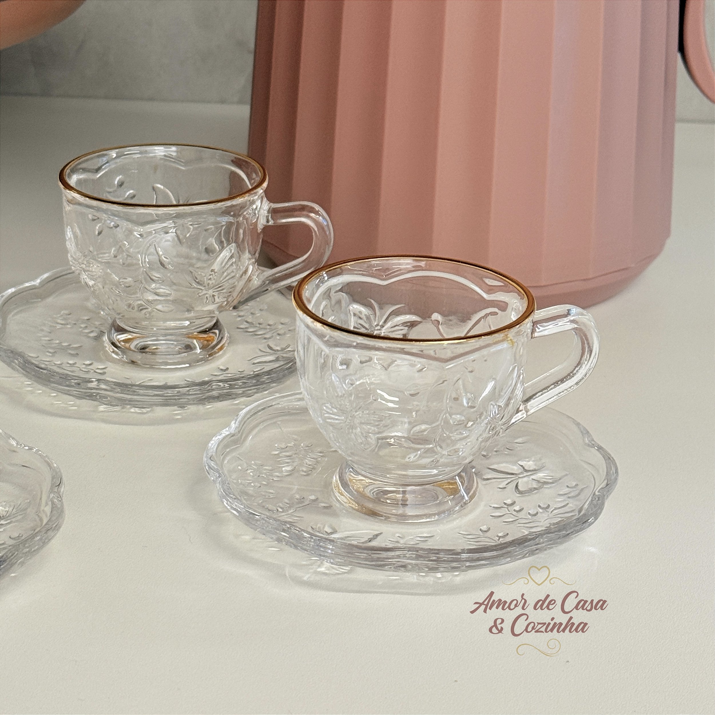 CONJUNTO 06 XÌCARAS COM PIRES DE VIDRO NEW BUTTERFLY