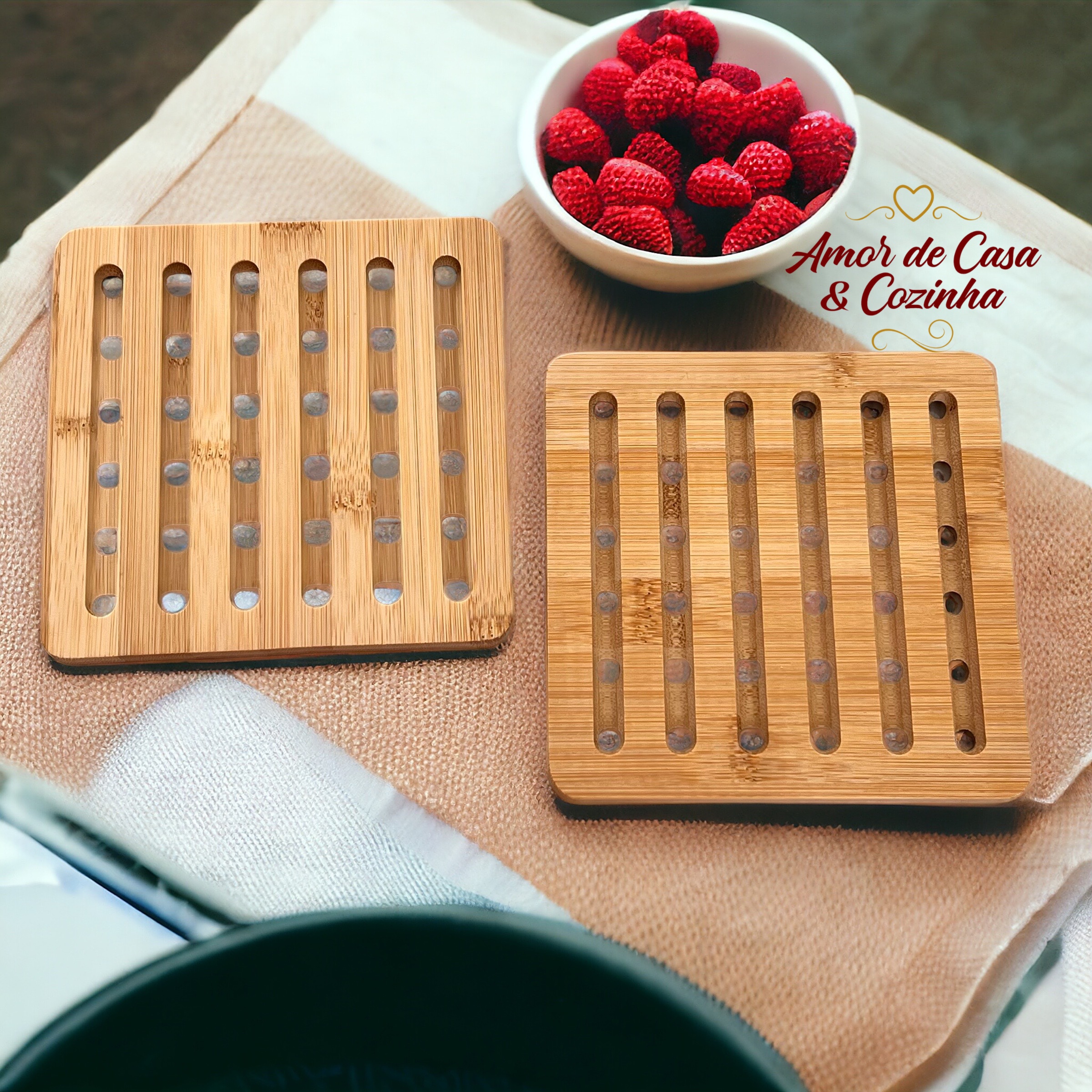 DESCANSO DE PANELA DE BAMBU QUADRADO OU REDONDO 16 CM