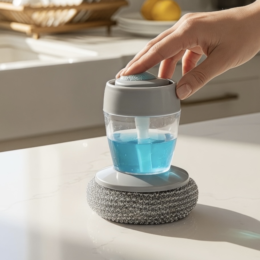 Pensando em facílidade para o seu dia a dia, trouxemos a escova para limpeza com dispenser