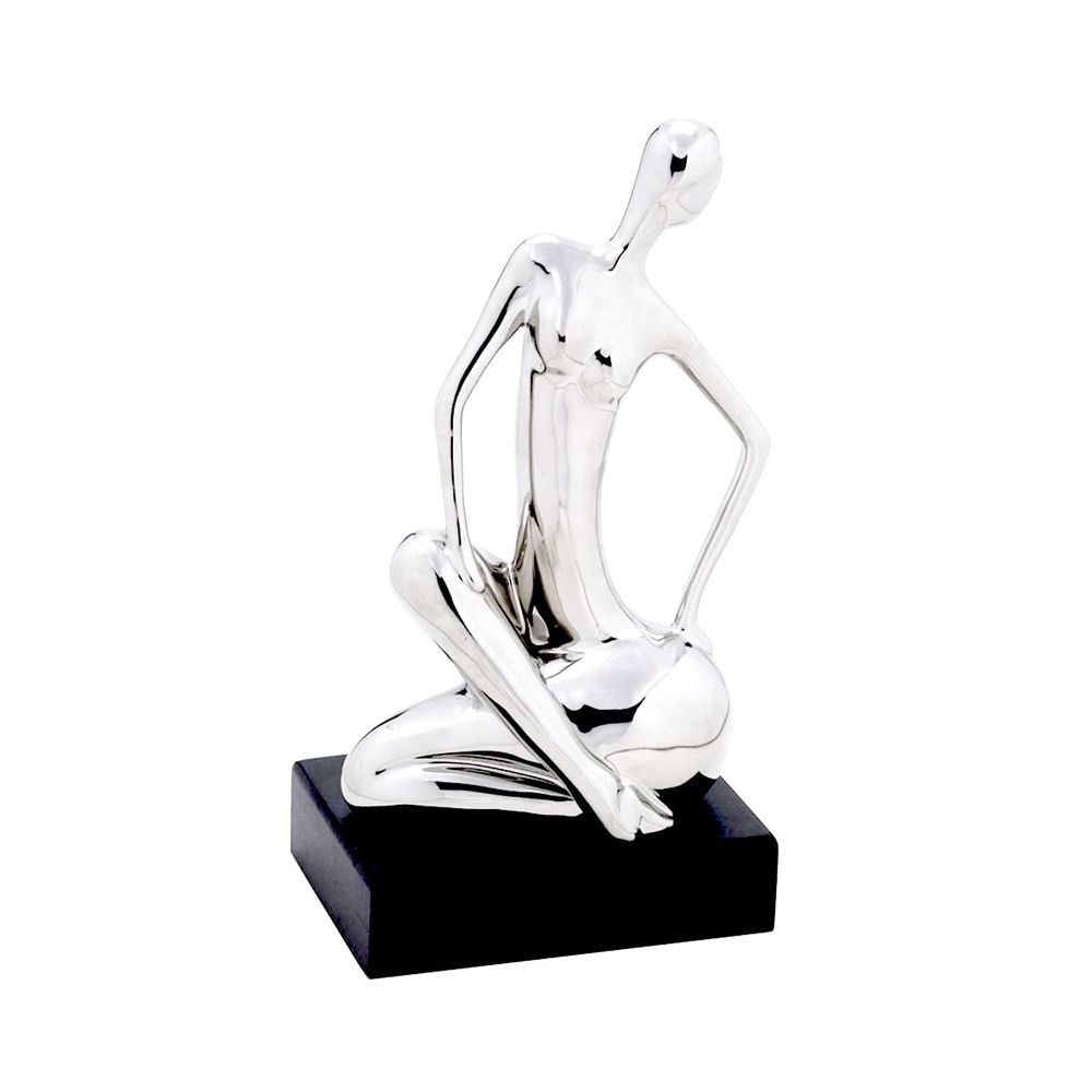 Elaborada em Resina na cor prata e preto, a mulher nesta posição de alongamento que pode se referir ao pilates , yoga ou outra atividade física. Ela remete ao pensamento de se exercitar faz bem a qualquer pessoa com esta posição famosa de alongamento. Ideal para academias, estúdios, rack, estantes, prateleiras, nichos, mesas de canto, de cabeceira, escritórios, consultórios, bibliotecas.