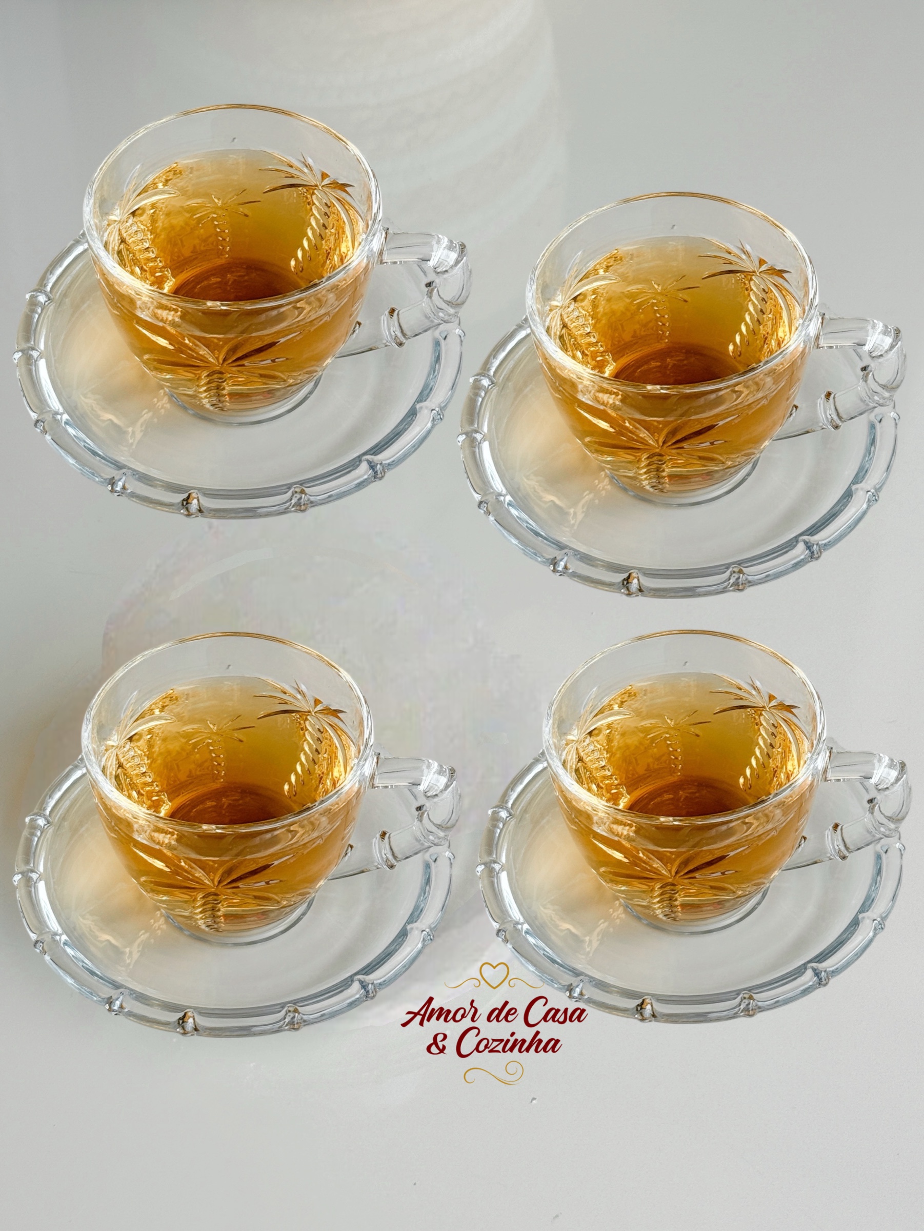 CONJUNTO 4 XÍCARAS CHÁ DE VIDRO TRANCOSO