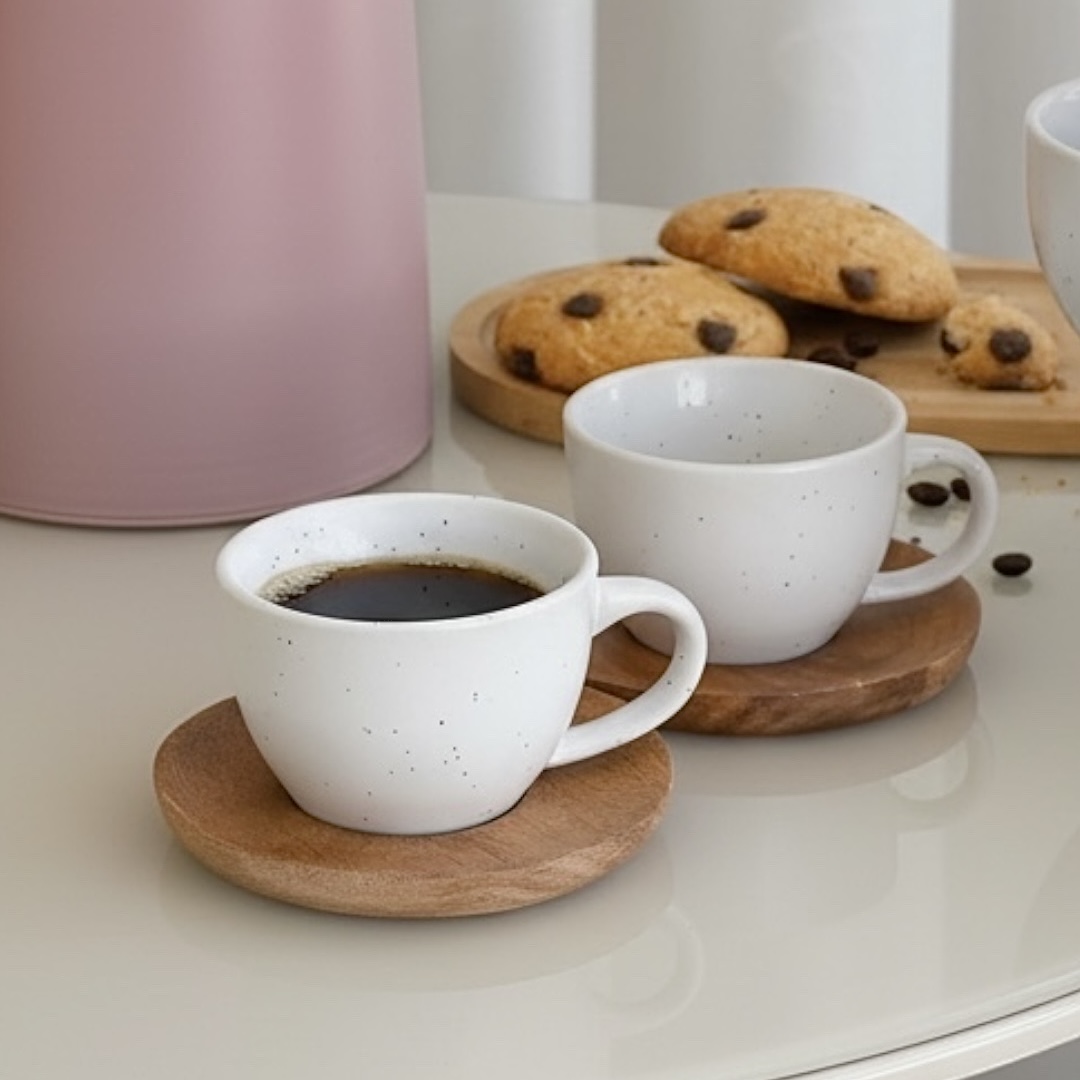 Conjunto 6 xícaras com 6 pires de madeira acácia