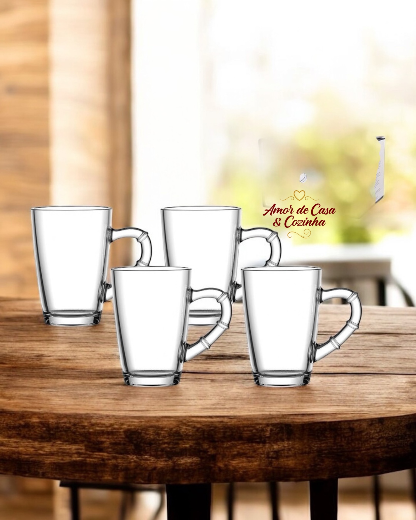 JOGO 4 CANECAS DE VIDRO SERVIR BAMBU
