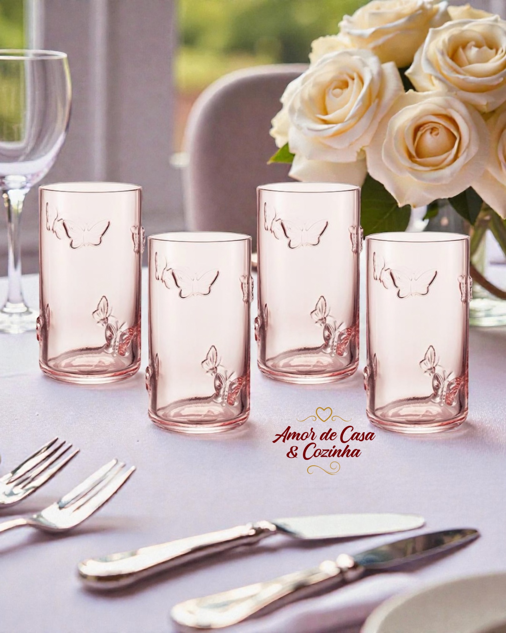 JOGO COPOS BUTTERFLY DE VIDRO ALTO 460ML
