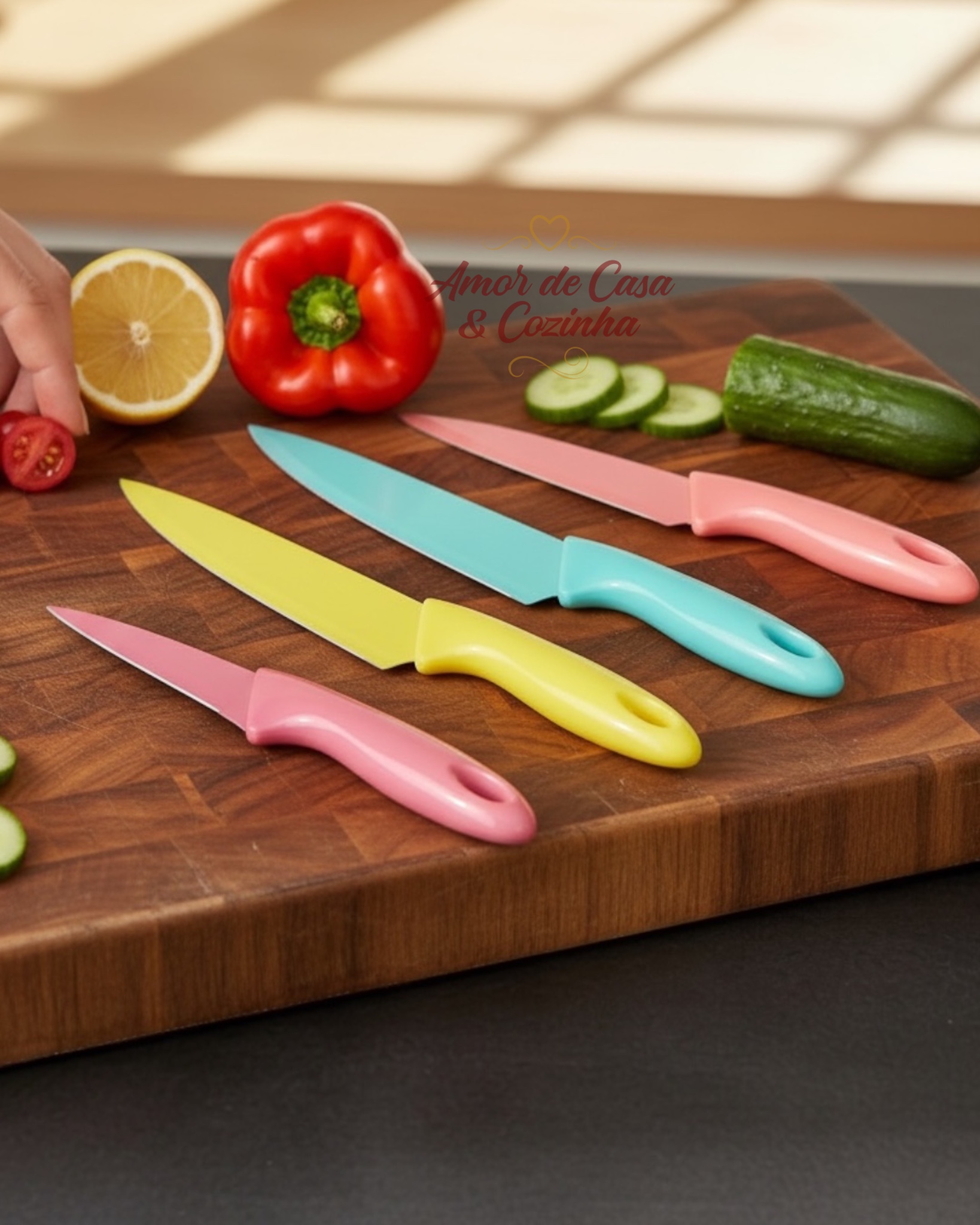 Deixe sua rotina na cozinhamais prática e cheia de estilo com esse kit de facas coloridas.Ideal para cortar frutas, legumes, carnes e diversos alimentos com facilidade.