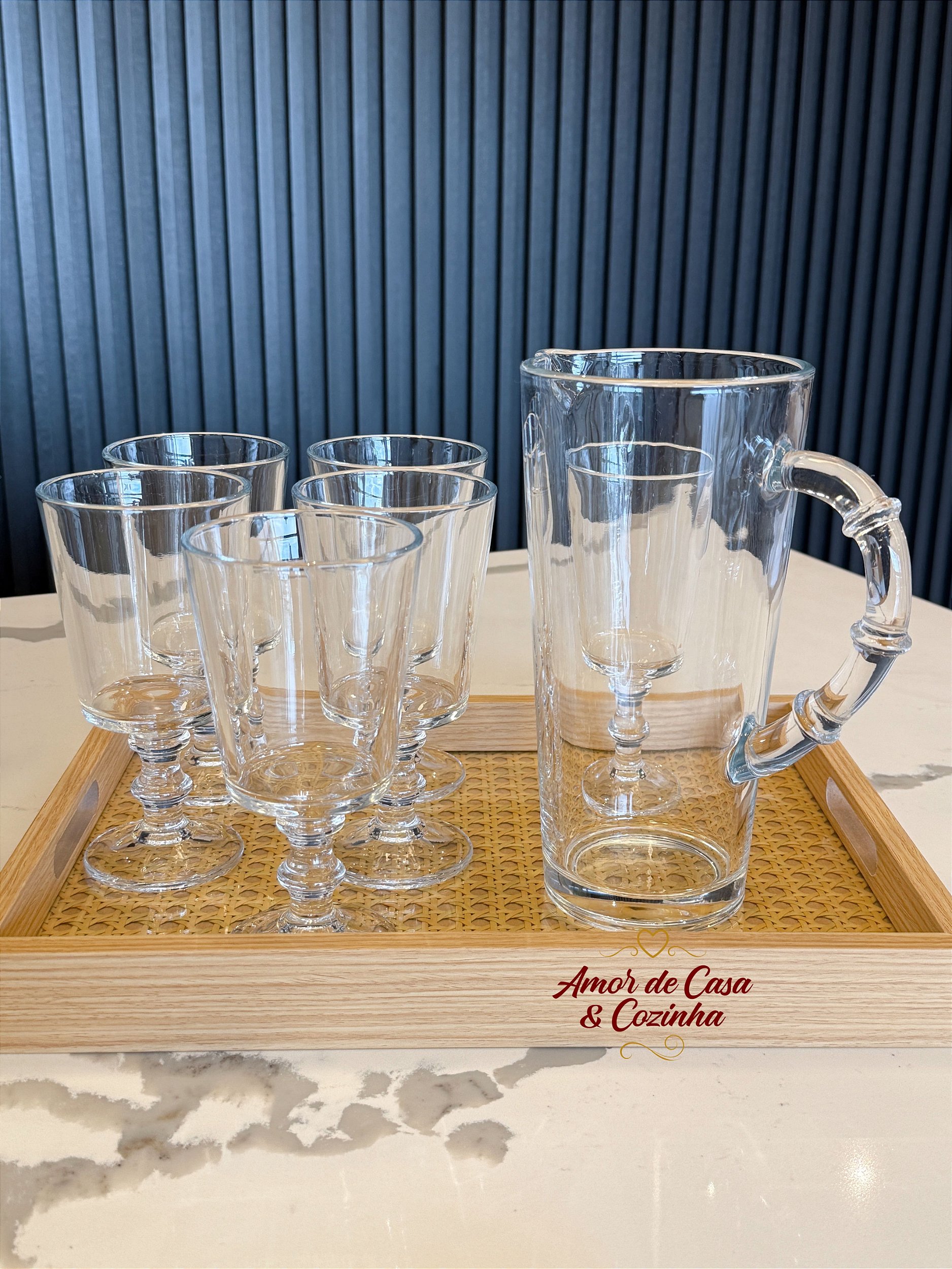 KIT JARRA E 6 TAÇAS DE VIDRO SERVIR BAMBOO