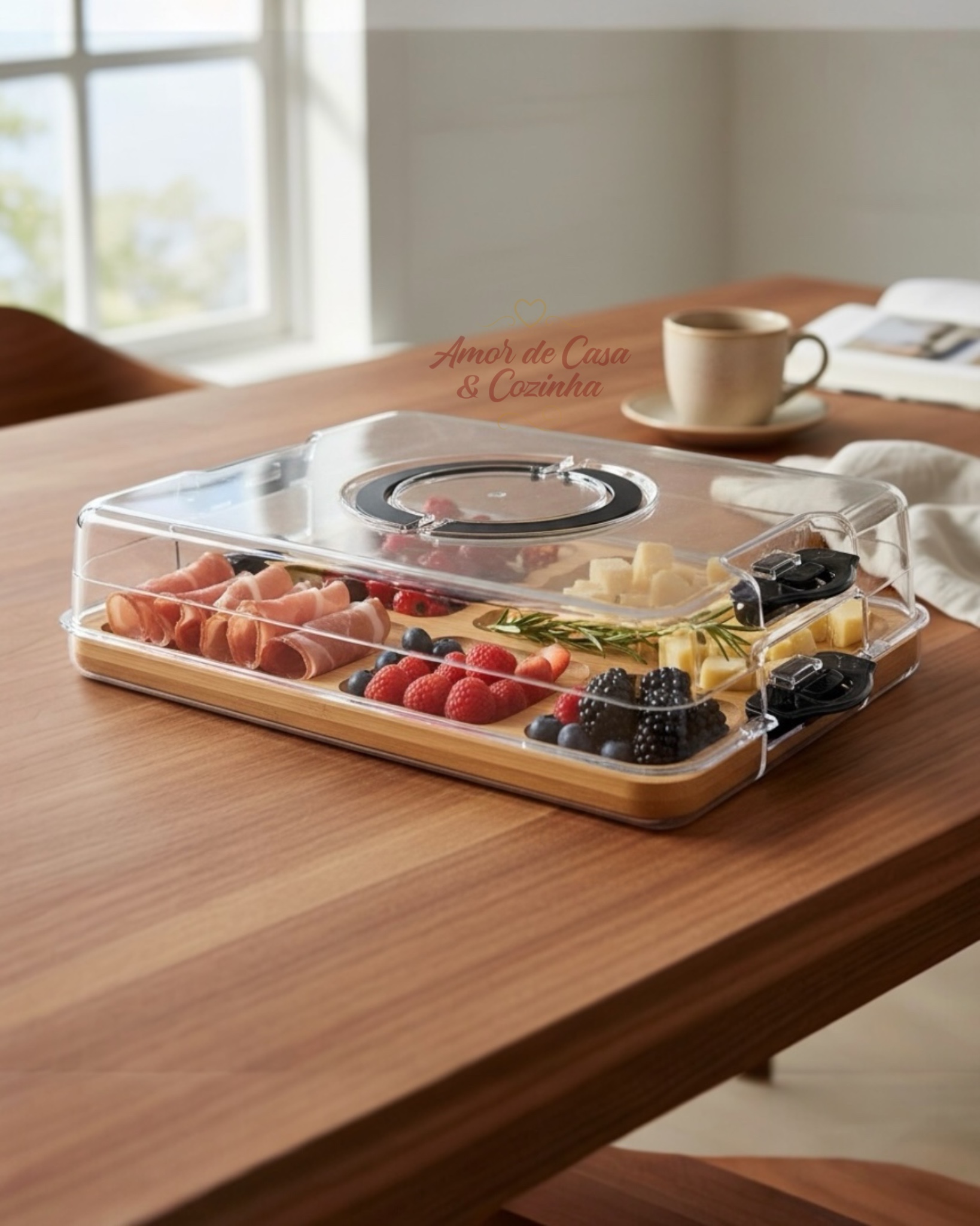 Formato retangular com alças e travas proporcionam mais leveza e segurança para transportar decorar e servir a mesa.