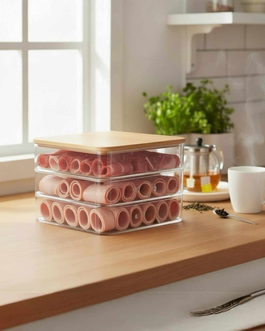 Perfeito para organizar sua geladeira e ainda levar a mesa para servir.Produzido em acrilico, perfeito para manter seus frios frescos e sua geladeira organizada.
