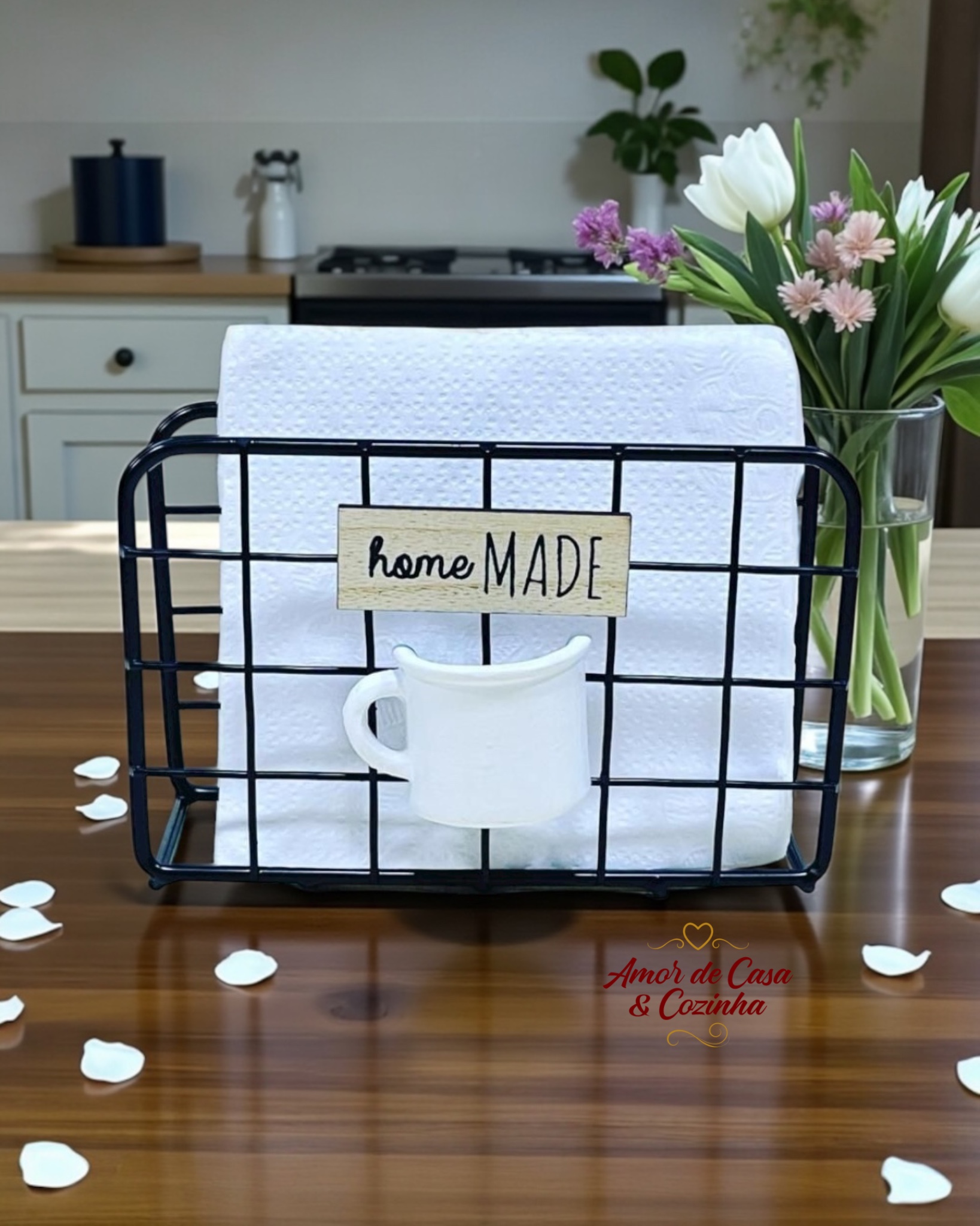 Porta guardanapo exclusivo com detalhe de uma xicara.