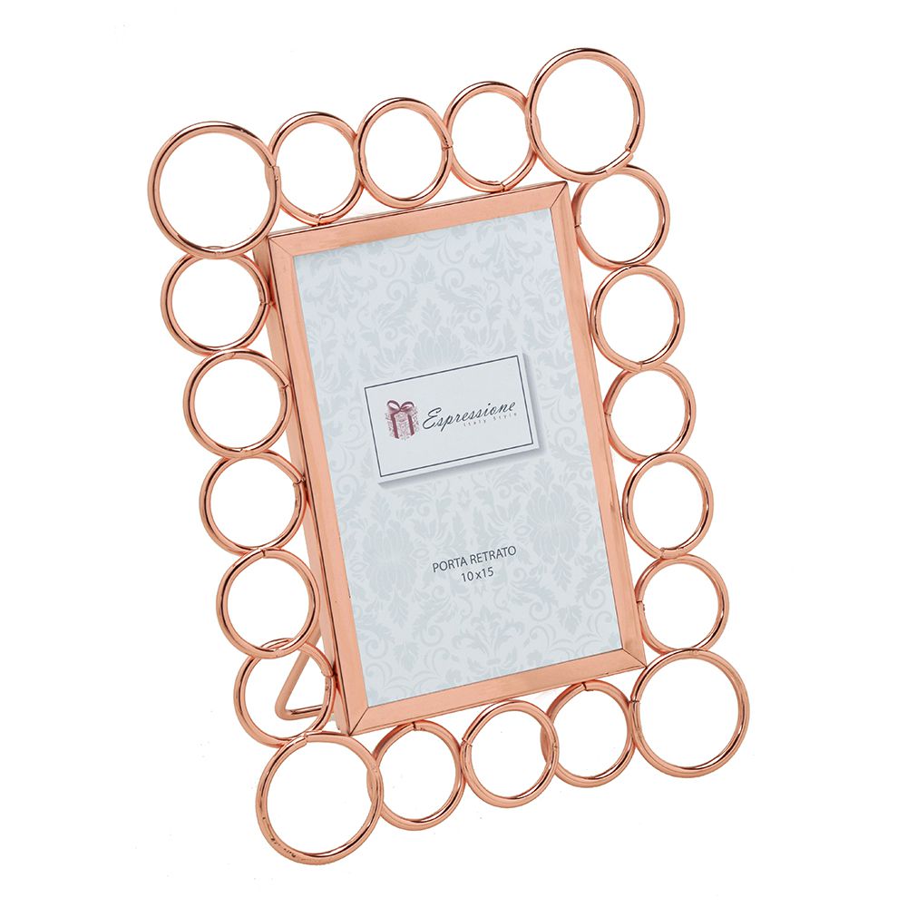Porta retrato com argolas laterais rose gold. Ideal para emoldurar fotos e complementar a decoração com um toque moderno.