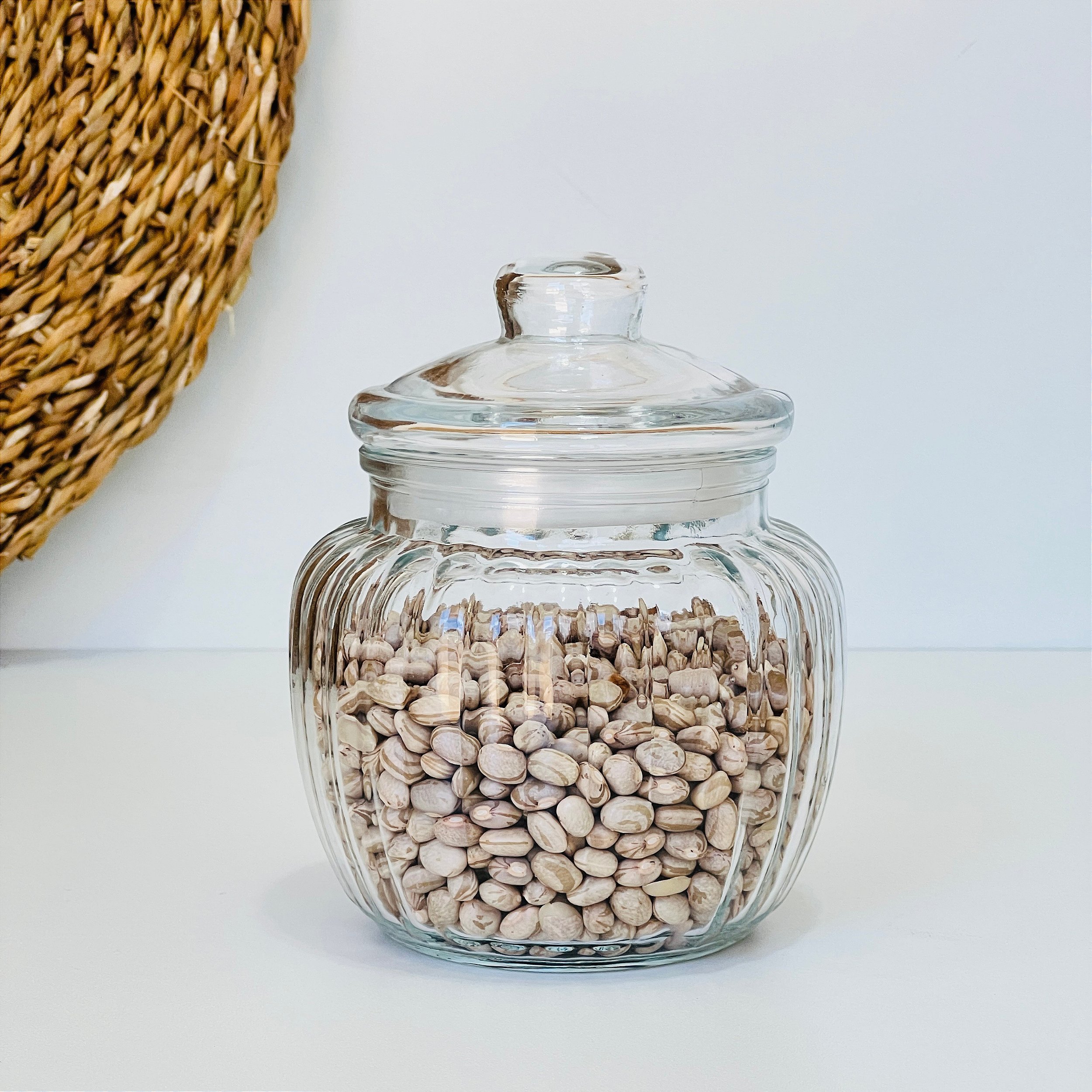 Pote de vidro com capacidade para 580ml com fechamento hermético de silicone. Um designer todo trabalhado em listras de alto relevo e uma tampa muito linta com puxador em formato de bolinha. Ótimo para biscoitos e docinhos.