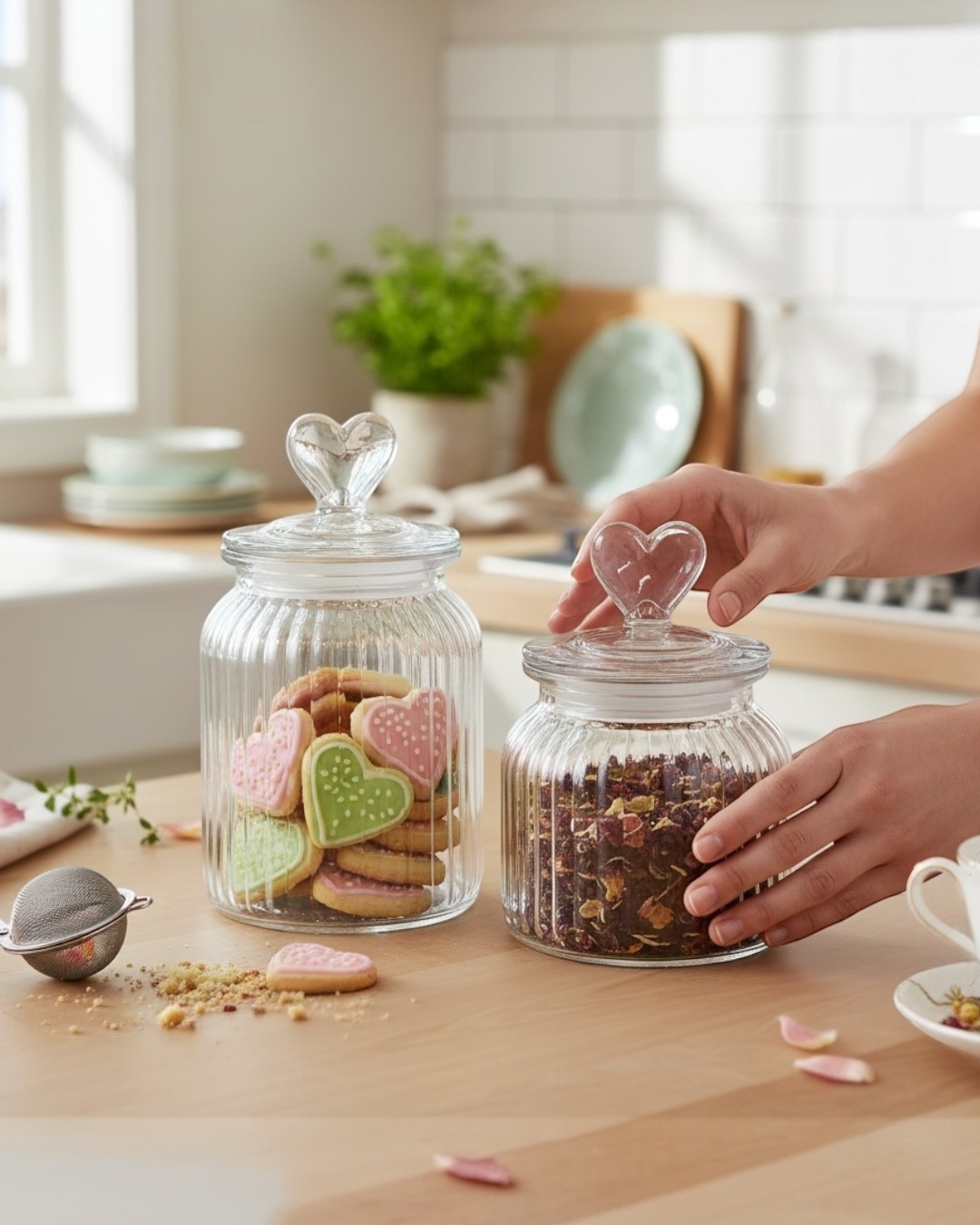 POTE DE VIDRO HERMÉTICO MULTIUSO TAMPA DE CORAÇÃO