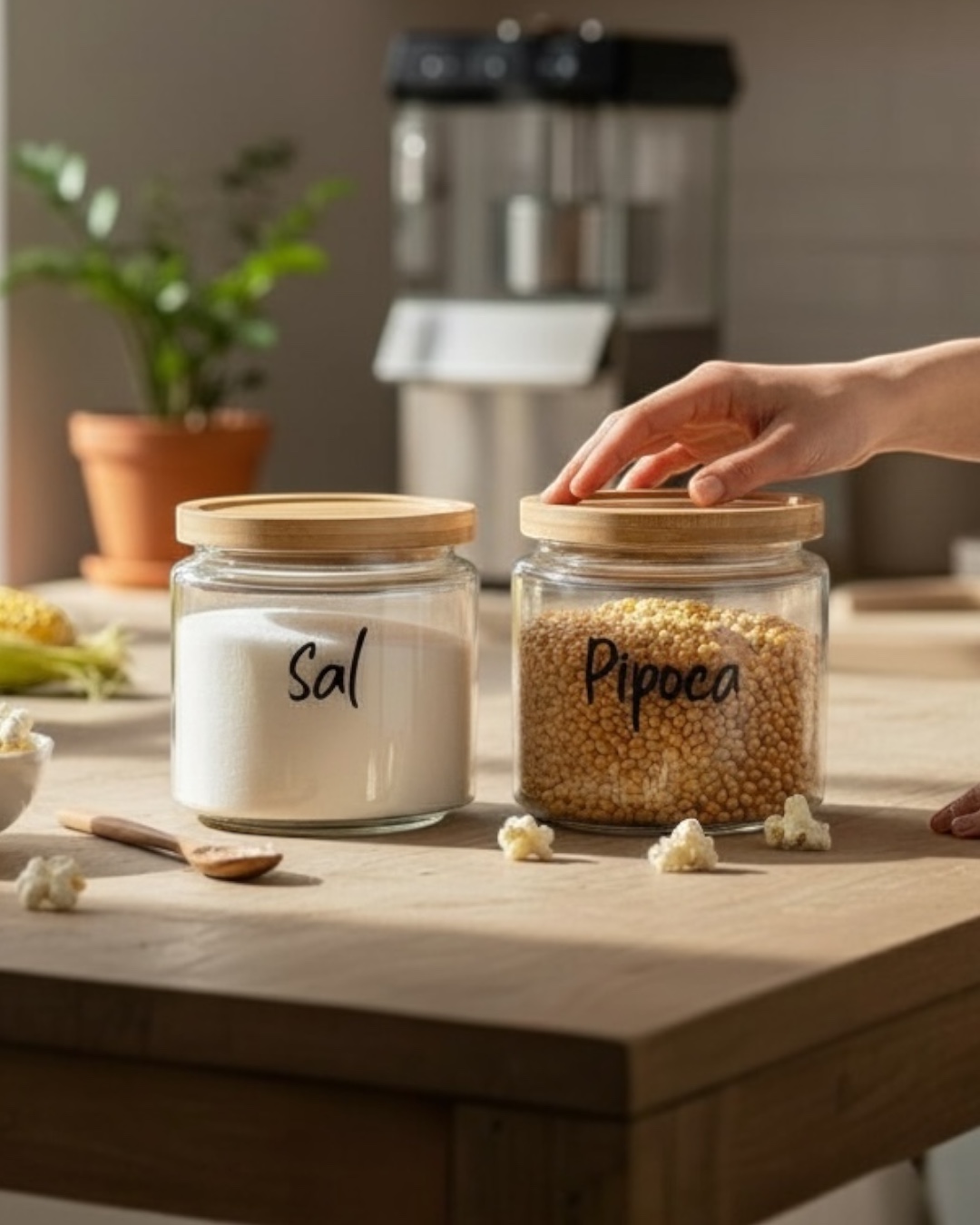 Pote de vidro borossilicato hermético com tampa de bambu.
