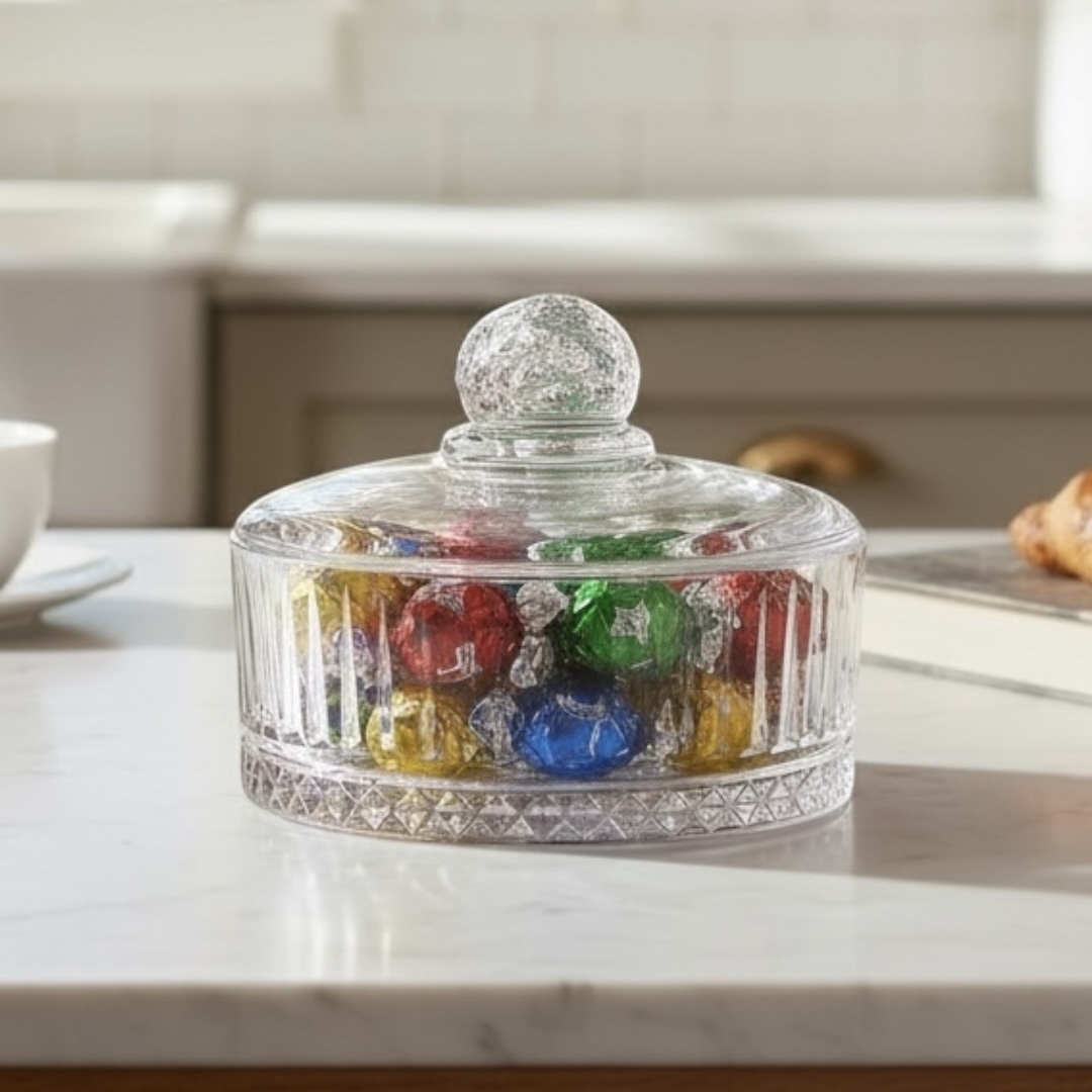 POTICHE DE VIDRO REDONDO COM TAMPA
