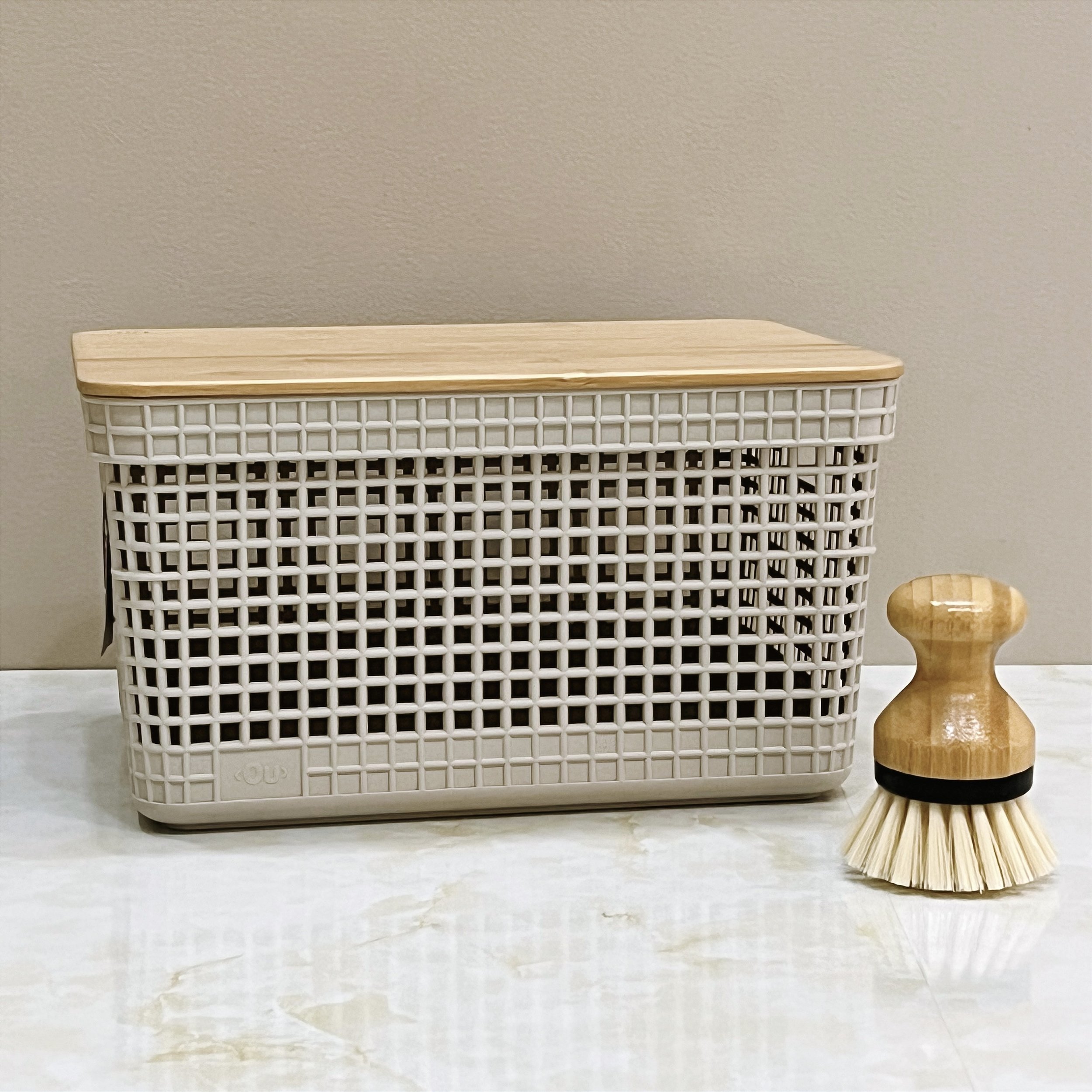 CESTO GRID COM TAMPA DE BAMBU BEGE 8 L