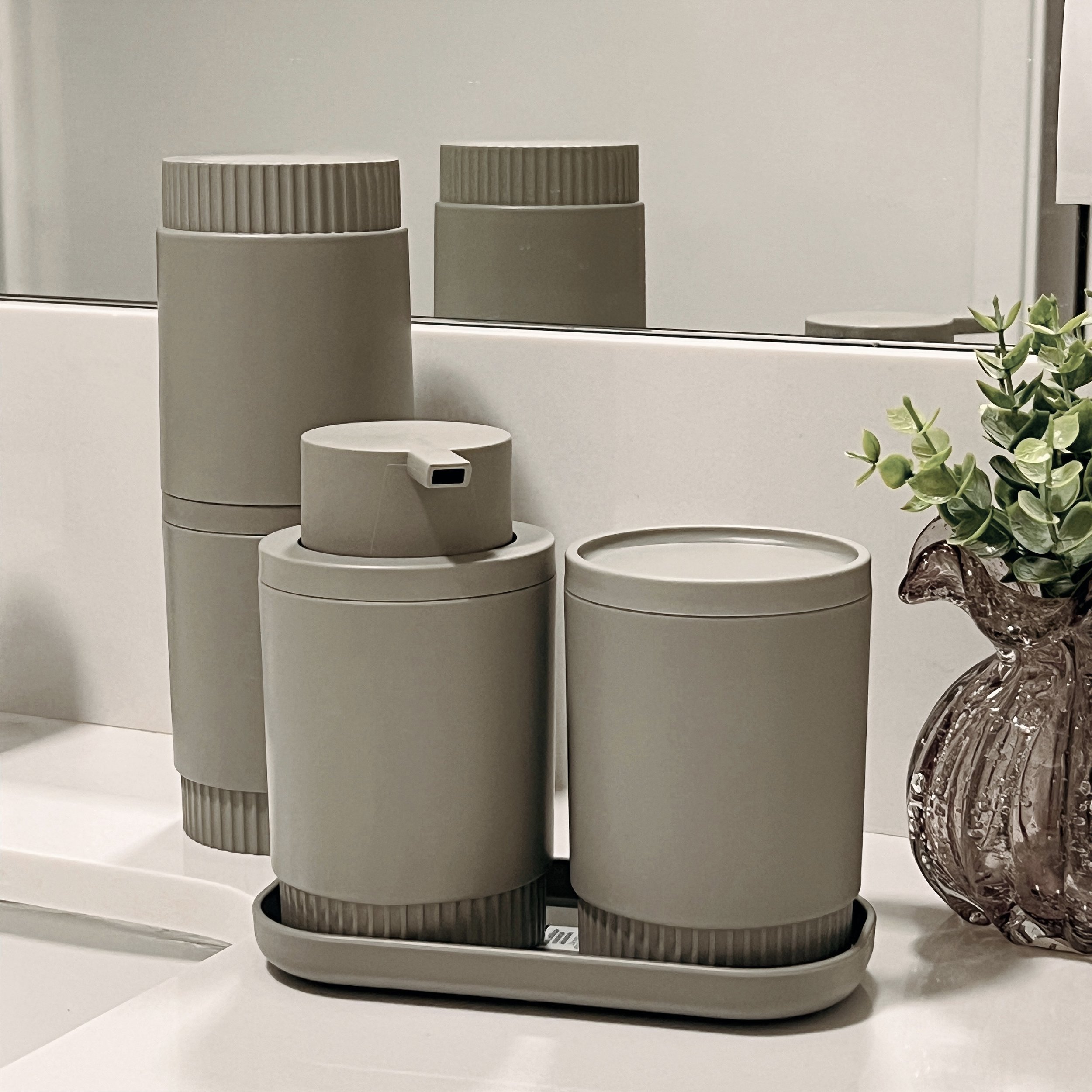 KIT TOILET PORTA SABONETE LÍQUIDO PORTA ESCOVA PORTA ALGODÃO COM TAMPA E BANDEJA