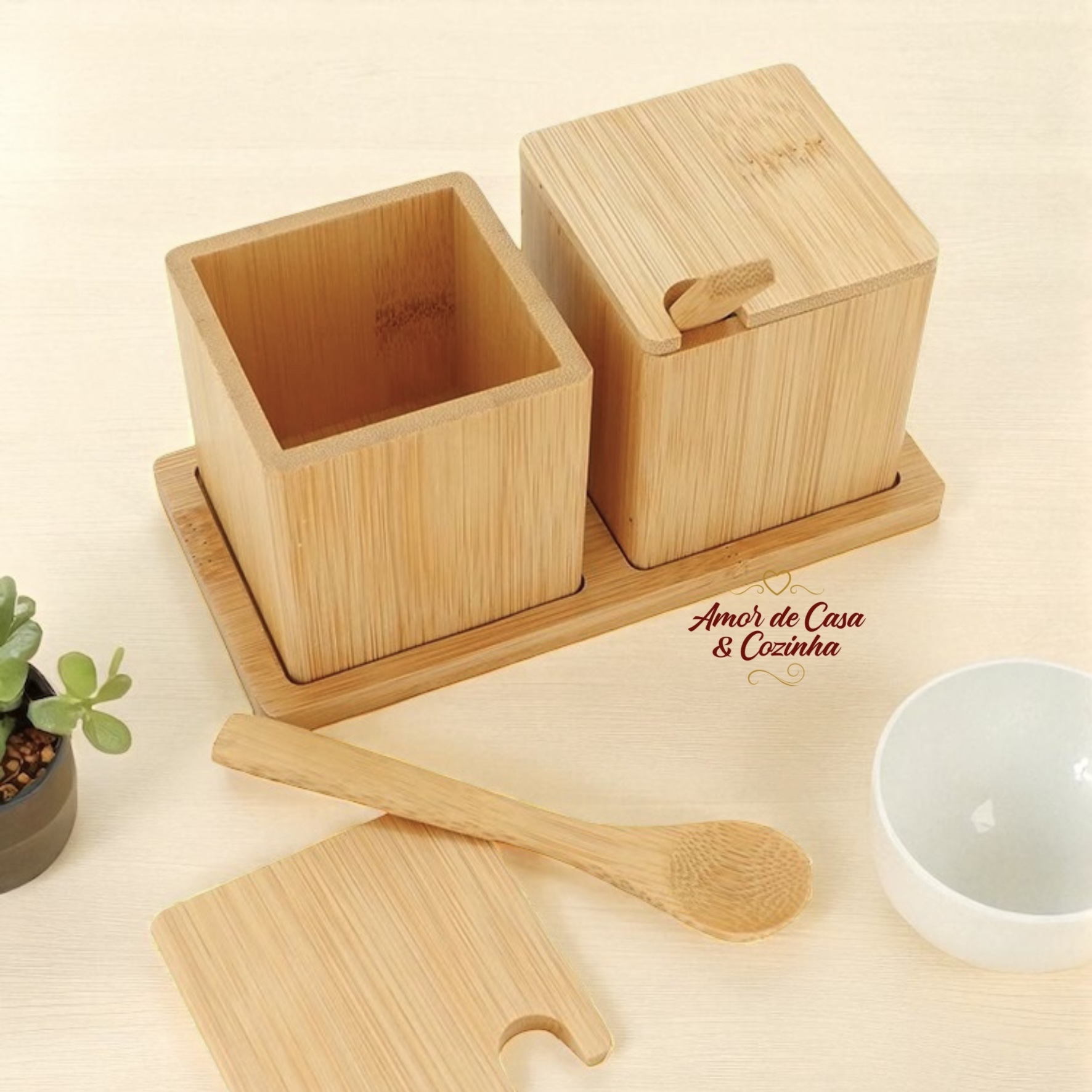 PORTA TEMPEROS E CONDIMENTOS COM BASE COLHER DE BAMBU NATURAL