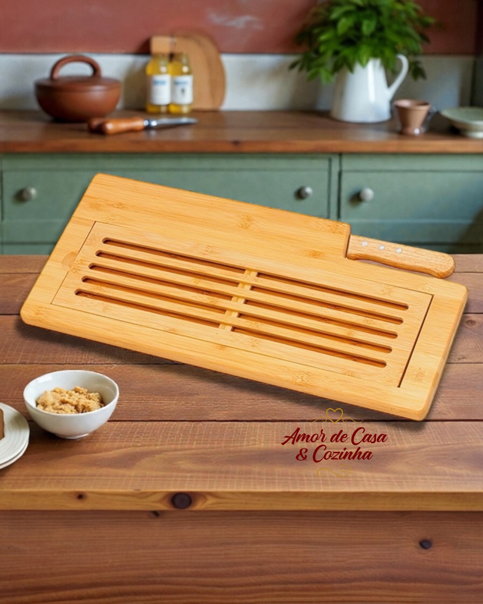 TÁBUA MIGALHEIRA PARA PÃES DE BAMBU COM FACA