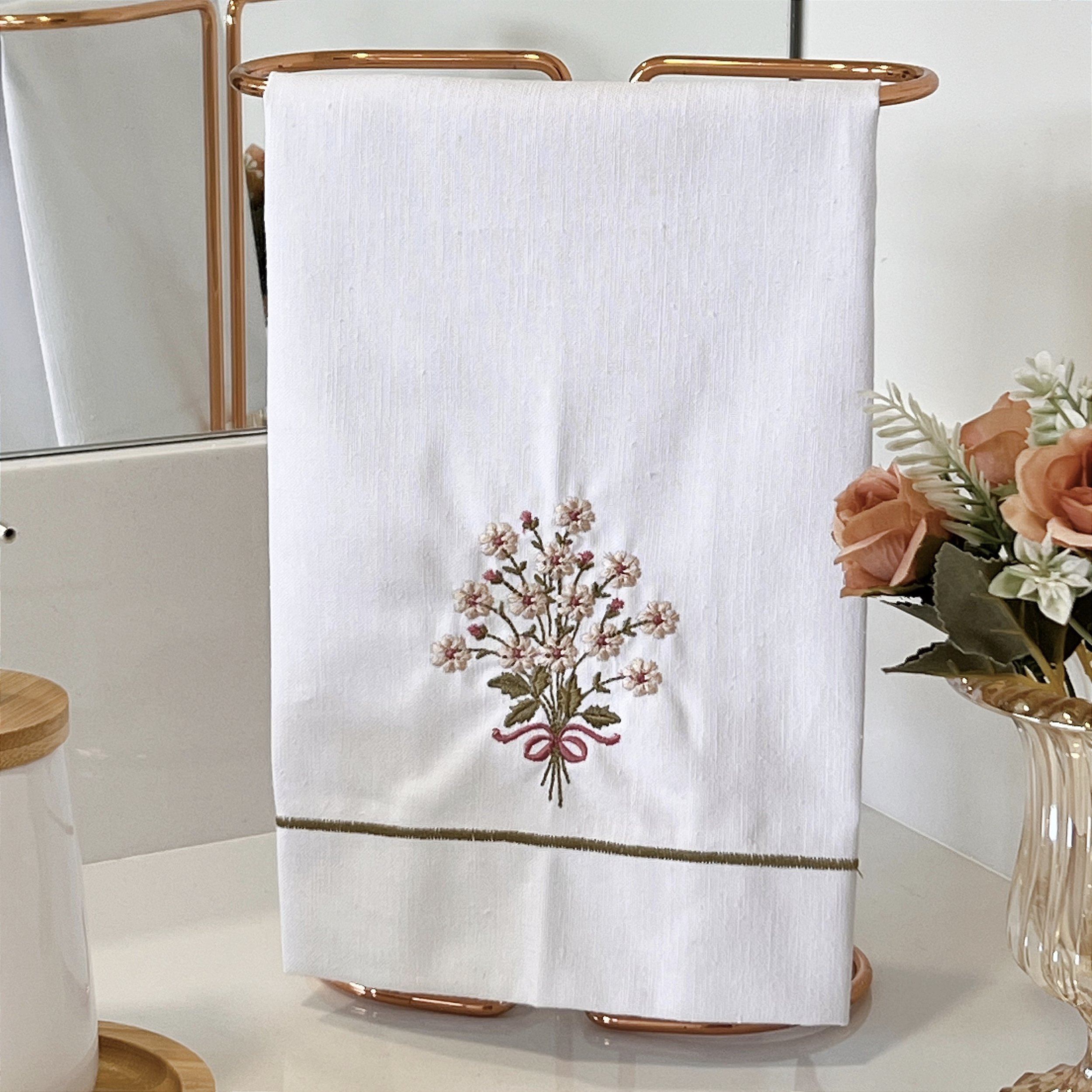 TOALHA DE LAVABO LINHO BORDADA BUQUÊ NUDE
